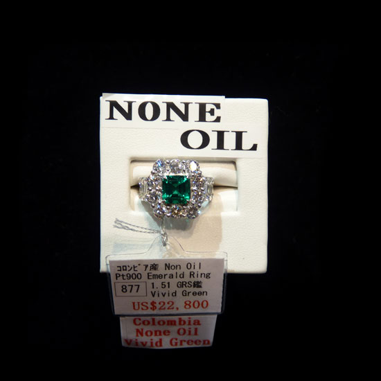 This is a quality finger ring that is made of platinum and shimmers with a high-gloss finish. It is ornamented with a large emerald gemstone as the centerpiece. The allover dazzling diamonds highlight this finger ring.