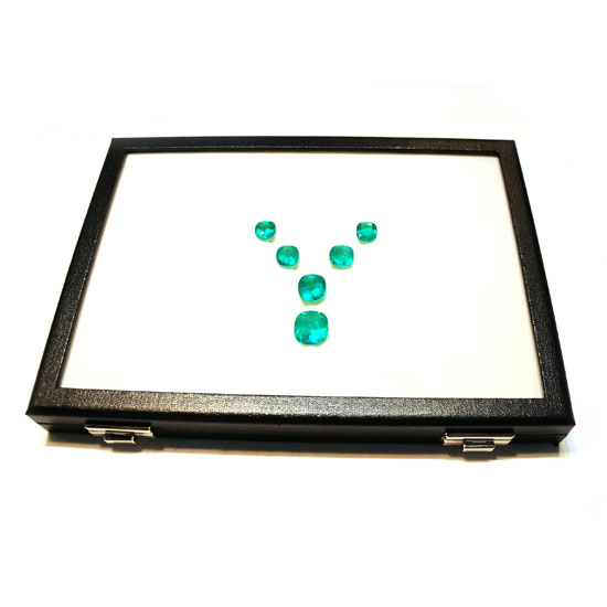 Featured here are six pieces of cushion-cut emerald stones in different sizes. The beautiful emerald stones showcase a lively forest green color. They are perfect to adorn necklaces, earrings, rings, bracelets, etc.