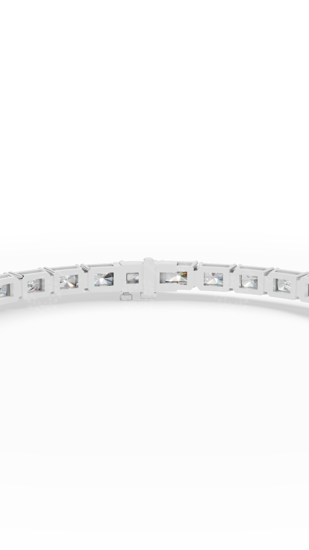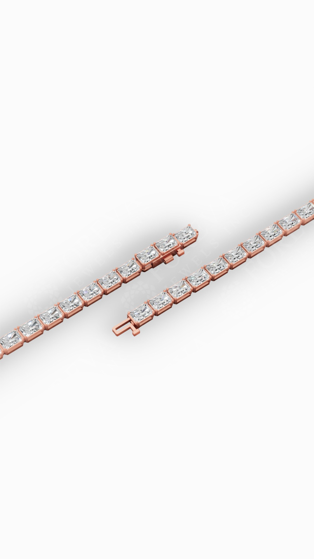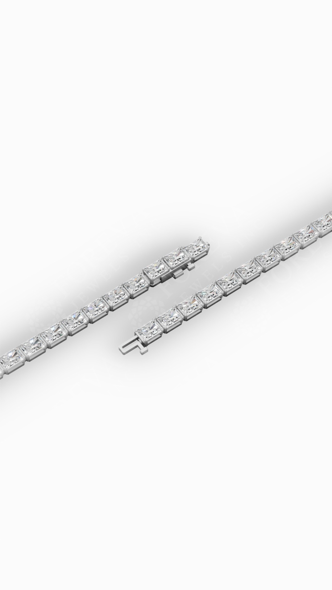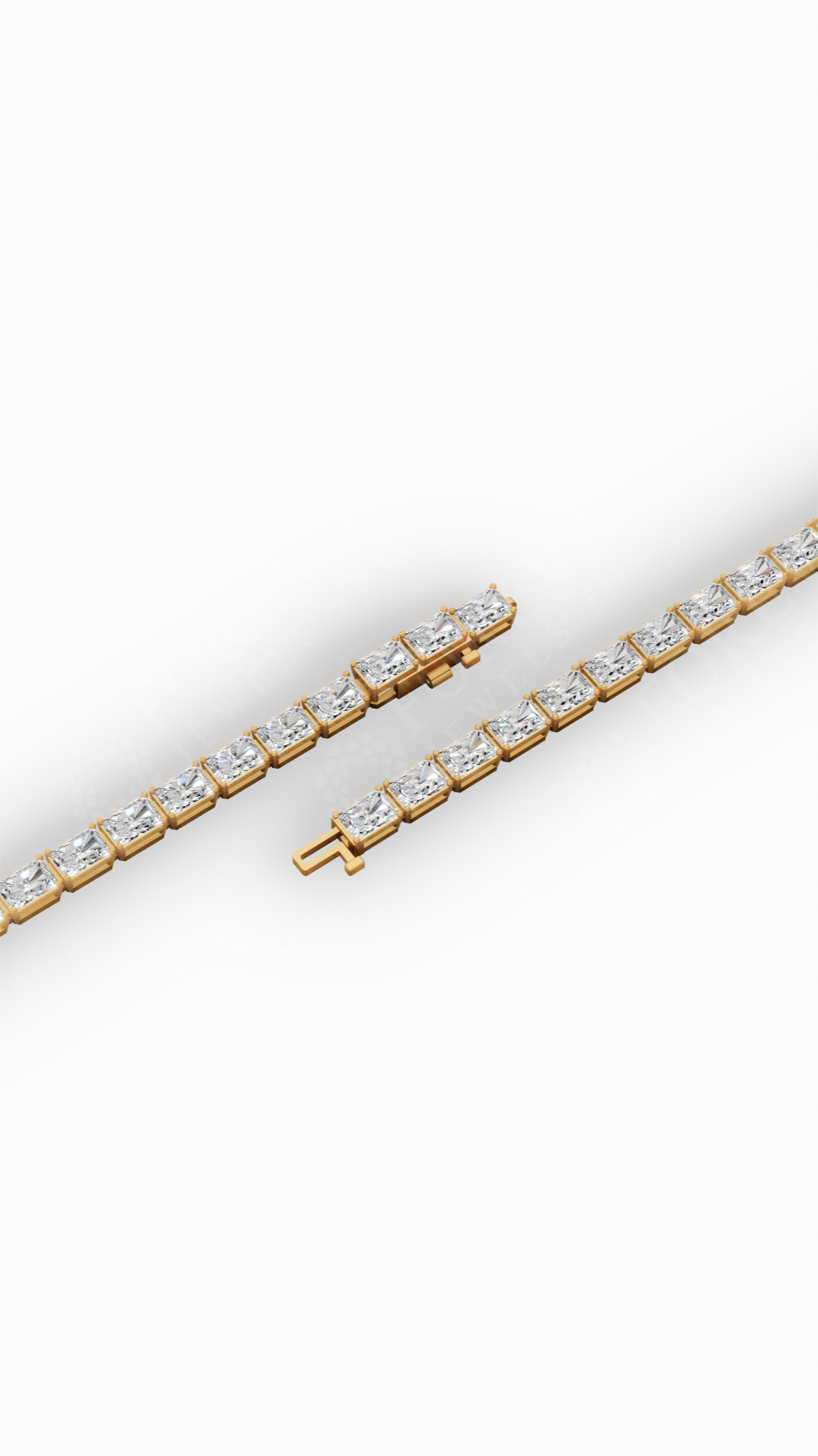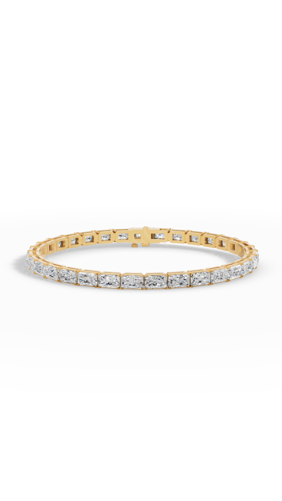 The emerald cut lab-grown diamond tennis bracelet features a series of elegant emerald-cut diamonds, set in secure prongs for a sleek, radiant, and timeless sparkle.