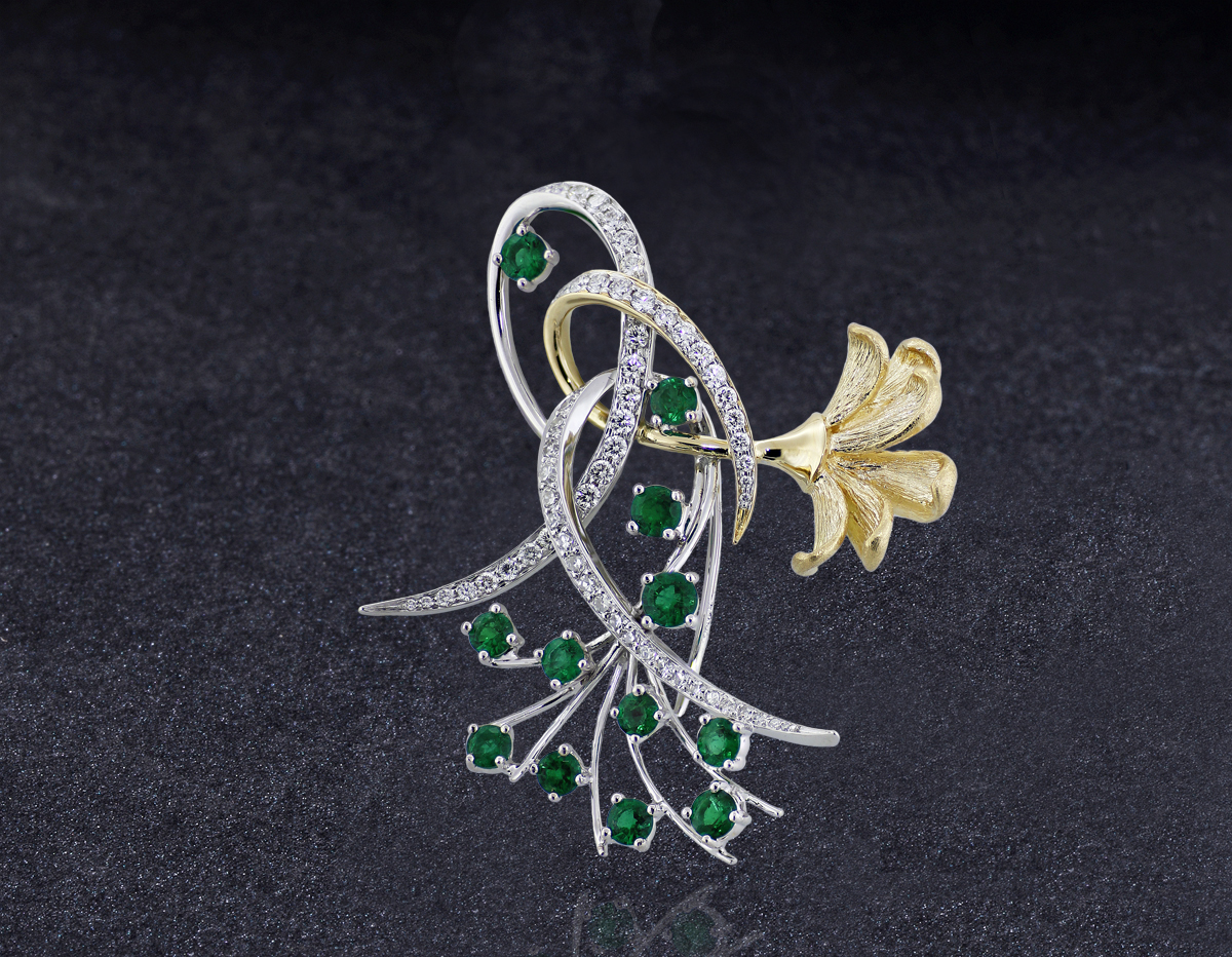 Emerald and Diamond Brooch