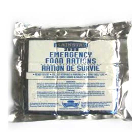The pictured Mainstay 3600 emergency food ration is a must-have item for any survival kit. This ready-to-eat food bar is full of vitamins and minerals and has a five year shelf life. It exceeds US Coast Guard standards and is perfect to have in place for emergencies.