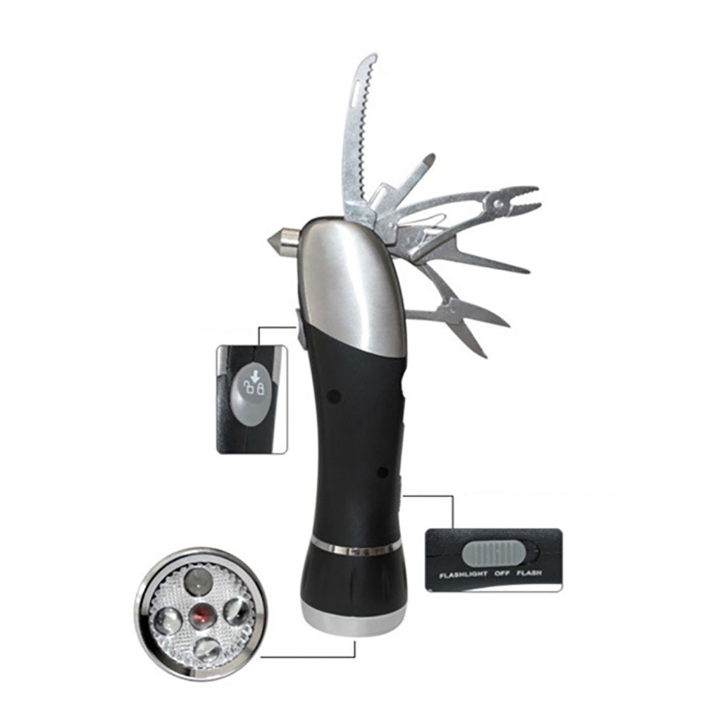 Emergency Multi Tool Kit with 4 LED Torch and Red Signal Flasher includes the following features :