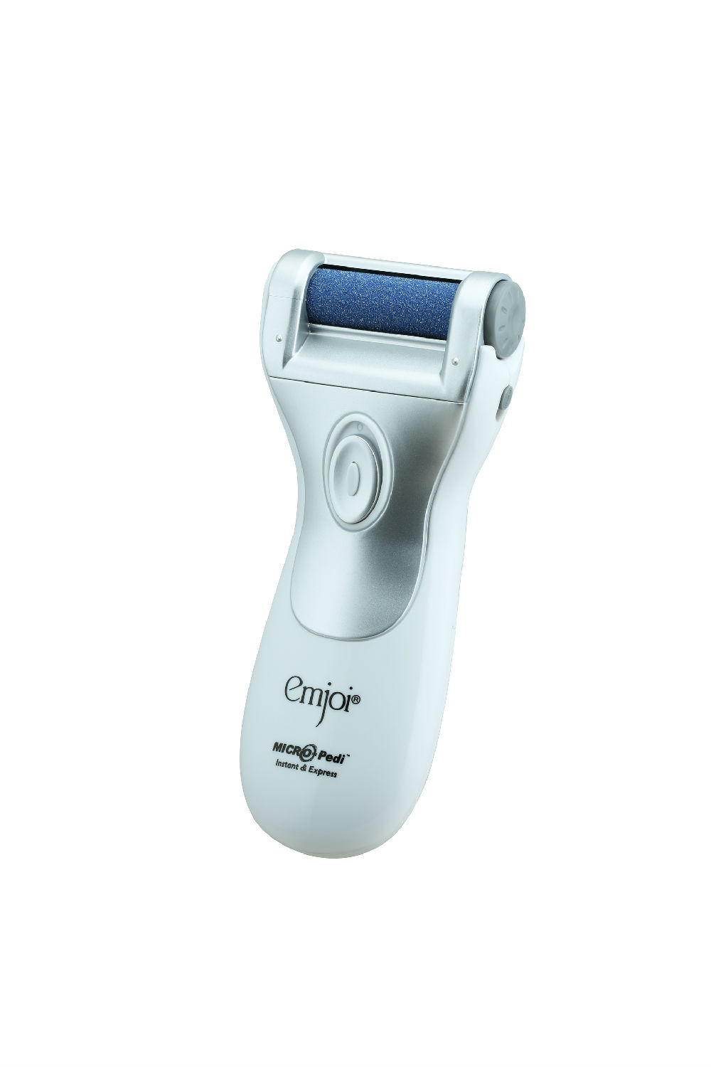 Emjoi Micro-Pedi Instant & Express is a ground-breaking device developed with new technology to smooth dry, dead, rough and calloused skin on the feet. The unique roller with patented micro minerals is anti-microbial and spins 360 degrees, at an amazing 30 times a second, to gently and effectively buff away hard, jagged skin on the soles and heels.
