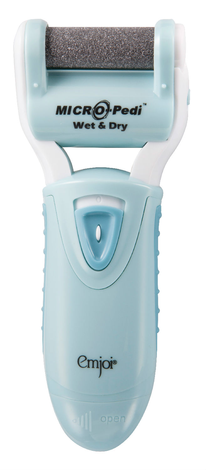 Emjoi Micro-Pedi Wet & Dry is an innovative device created to smooth dry, rough and calloused skin on the feet and can be used in wet or dry conditions. Unique roller spin 360 degrees, at an amazing 30 times a second, to gently and effectively buff away hard, jagged skin on the soles and heels. Salon quality results at home in seconds.
