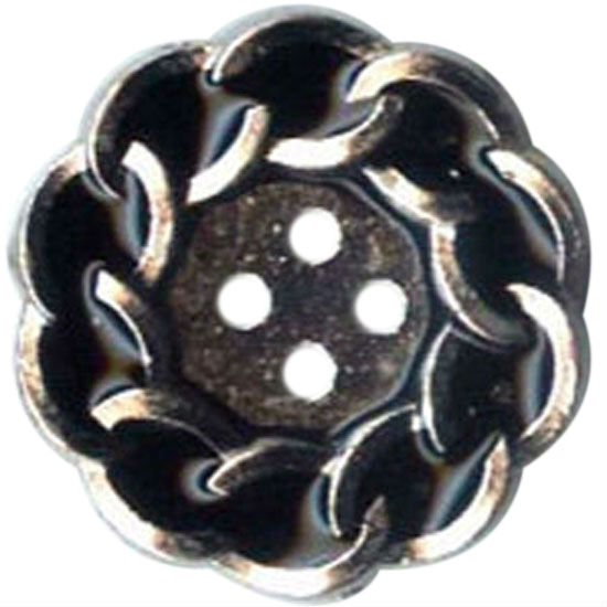 This rare sew-through button will be a great addition to your sewing box. Coming in a rather dark tone, this button comes in a chain-like rim which makes a scalloped edge. Not to mention its heavy-duty nickel construction, this little sewing helper is coated with quality enamel for the sake of good protection.
