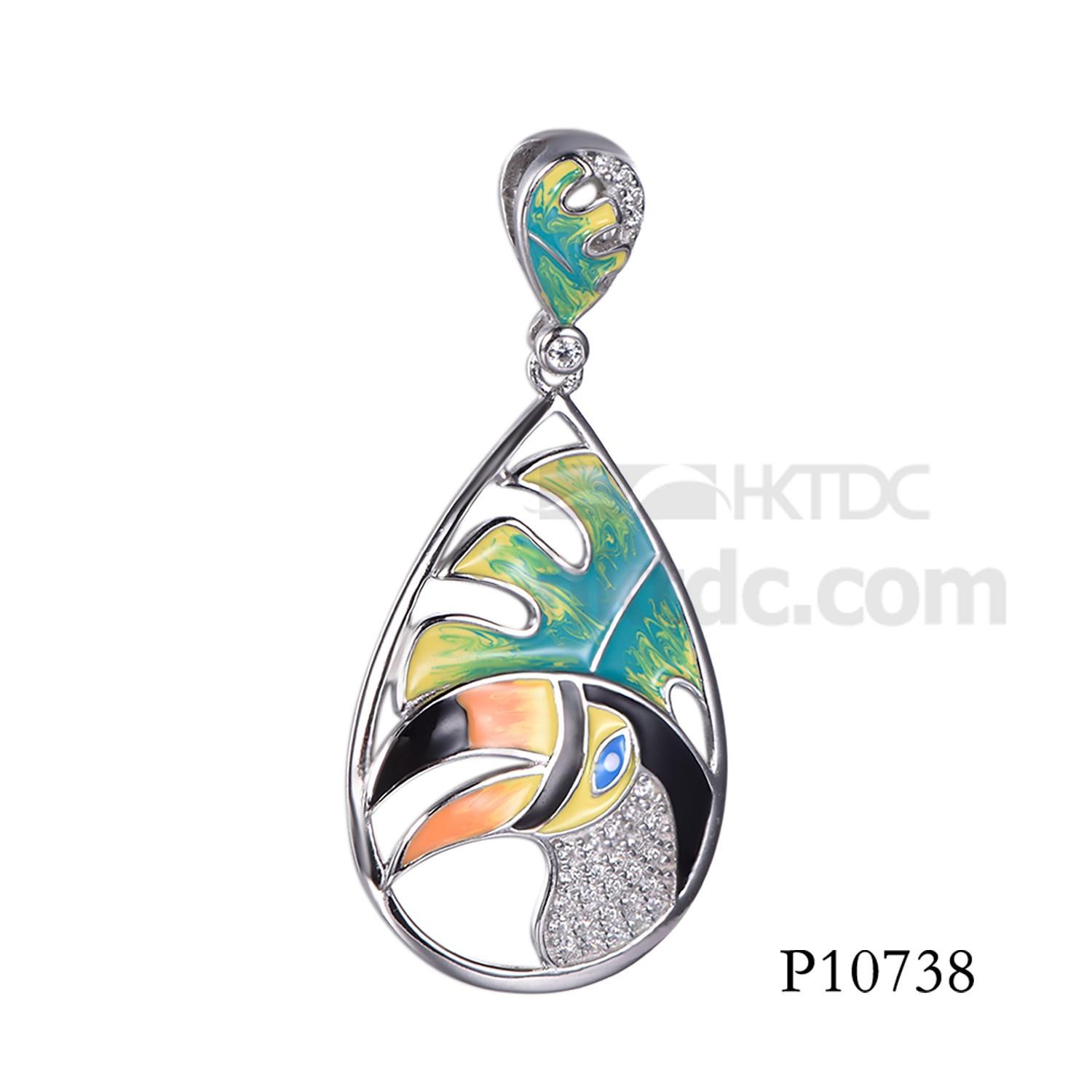 Enamel Drop-shape Toucan Bird Pendant 925 Sterling Silver Fine Jewelry