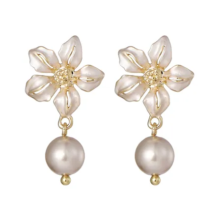 Enamel Flower Earring with Glass Pearl