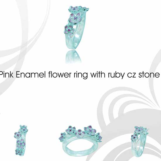 This exquisite ring is constructed of top-grade sterling silver in a polished finish. The floral-shaped accents are set with enamel and CZ stones for a glamorous touch. Add this gorgeous ring to your jewelry collection.