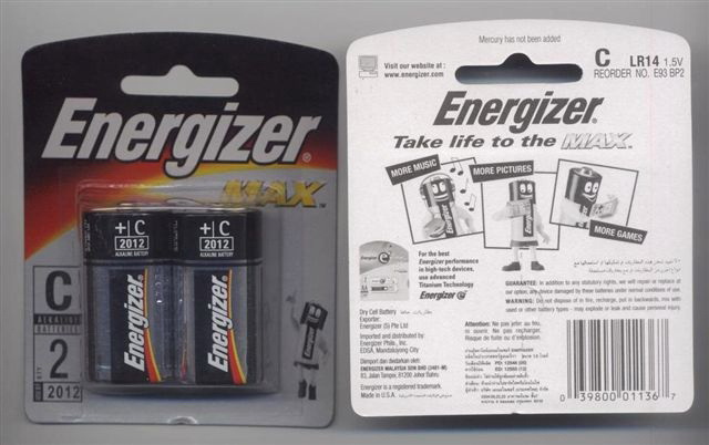 • Energizer alkaline battery with English text packing:2 pcs/card, 6packs/inner box, 108packs/outer carton.