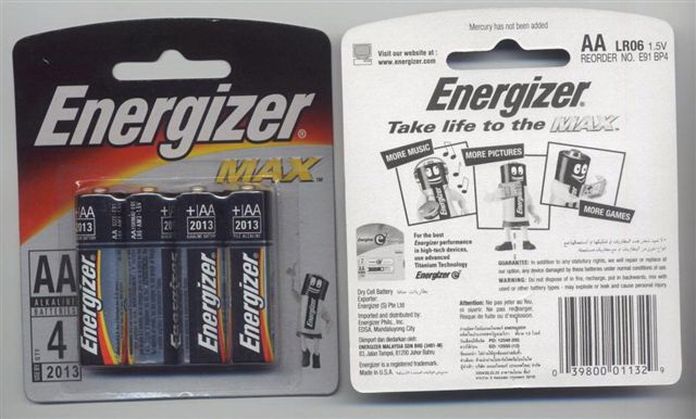 • Chemical system: Alkaline Zinc-Manganese Dioxide (No added Mercury or Cadmium). Environmental friendly battery.