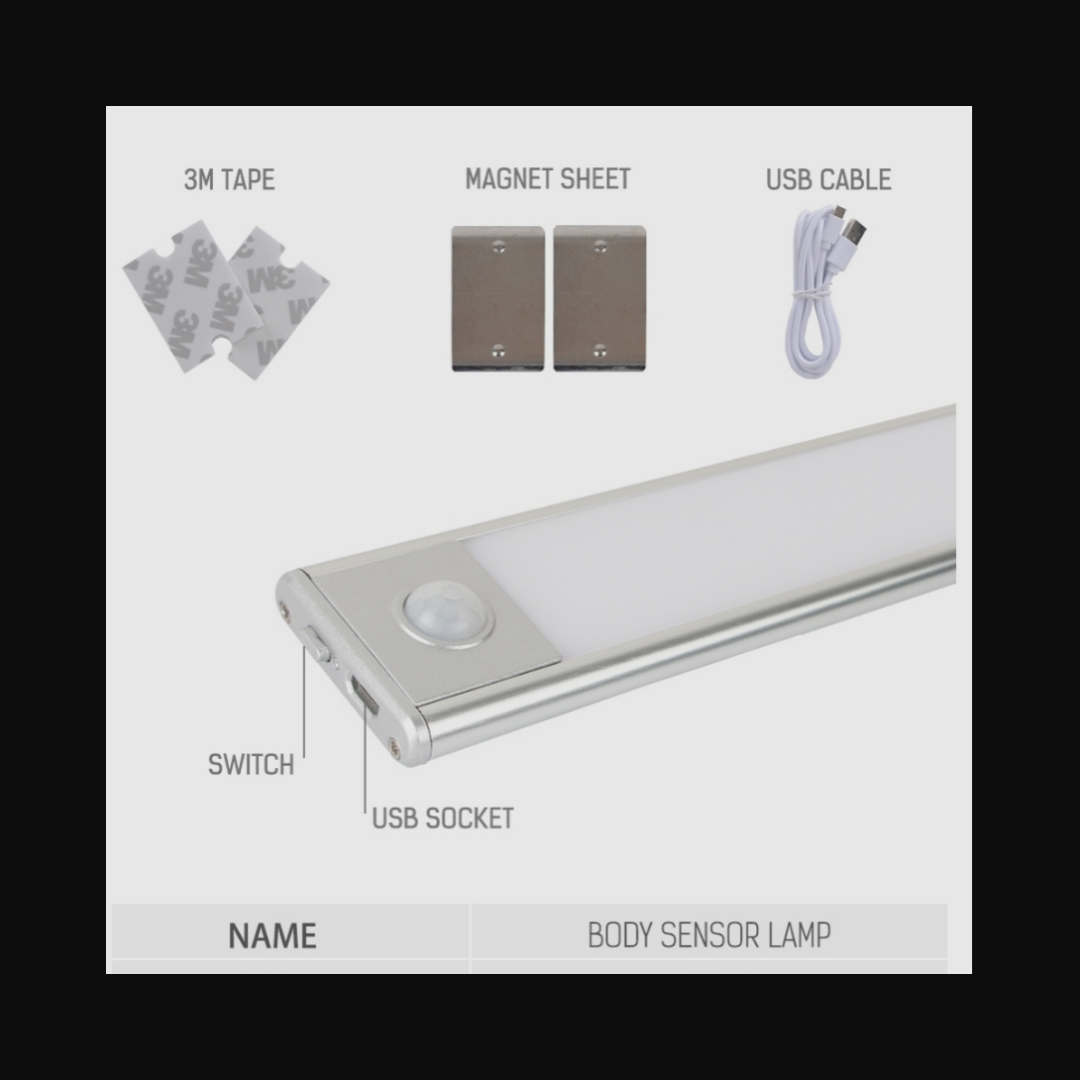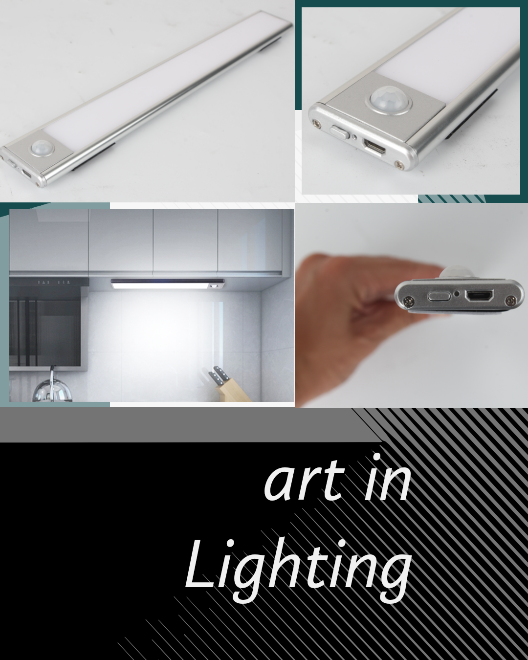 | Feature: Detection distance: 4.8-6M straight-line distance The LED body sensor lamp is delicate and ingenious with beautiful appearance; lighting and body sensing technology and 18 seconds fade up/fade out gradually technology are very practical, especially energy conservation Charging current: 5V/1A Power Supply: 950-1500 mAh Lithium Battery Charging Time: 6-10 hours Light Colors:Warm/Cold white Shell Colors: Silver/Black Material:Aluminum+PC+LED | 205.3x40x9mm lamp bead amount: 31; lithium battery: 950MA; Power: 1.28W | Unit Color box Size: 213x42x34mm G.W:138G Packing: 100pcs/ctn/23x44x36cm G.W:14.8kgs |