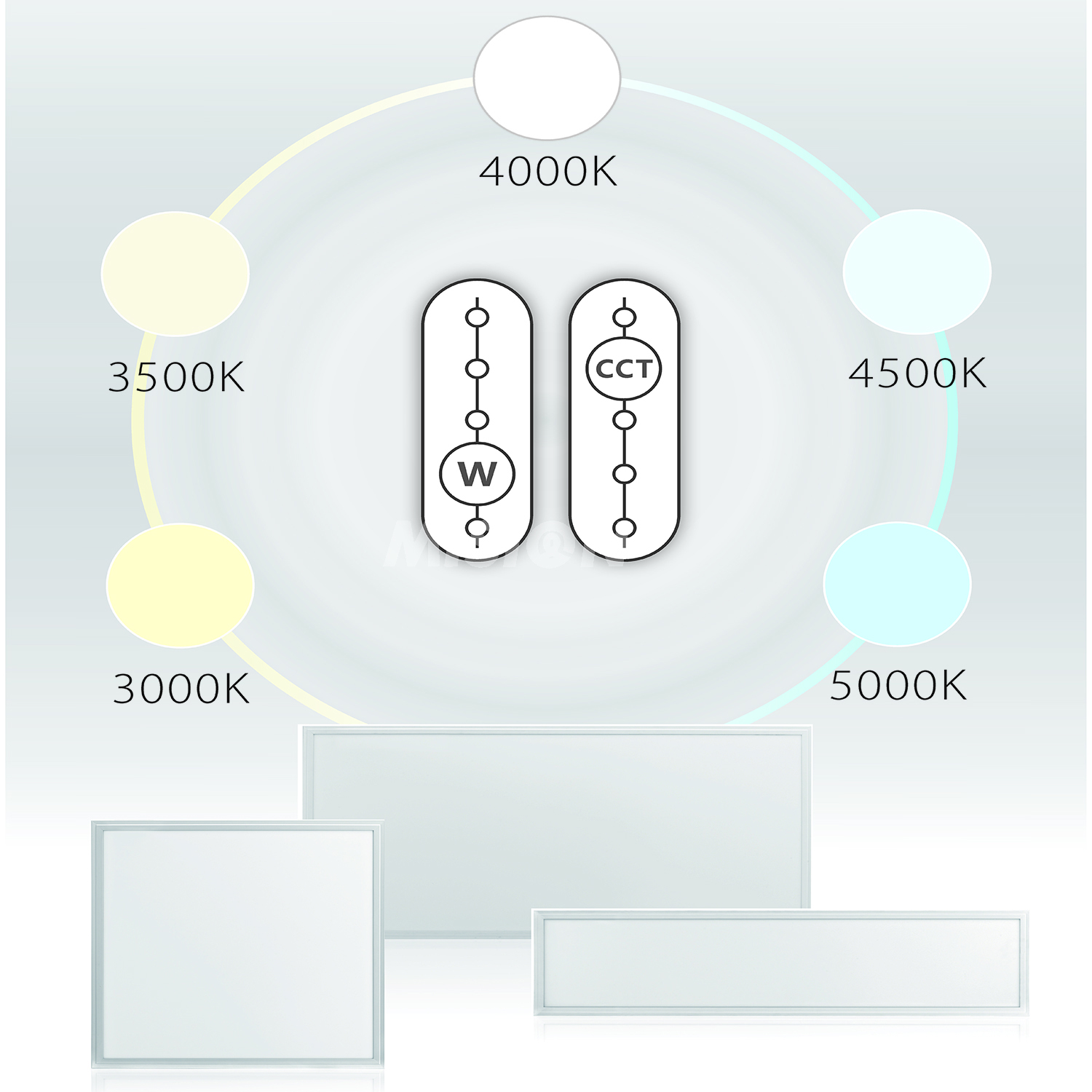 It provides high uniformity, excellent efficiency and reduced glare in T-grid ceiling applications. The 5 in 1 panel can greatly reduce inventory categories and reduce capital waste. And can provide customers with more CCT and brightness options
