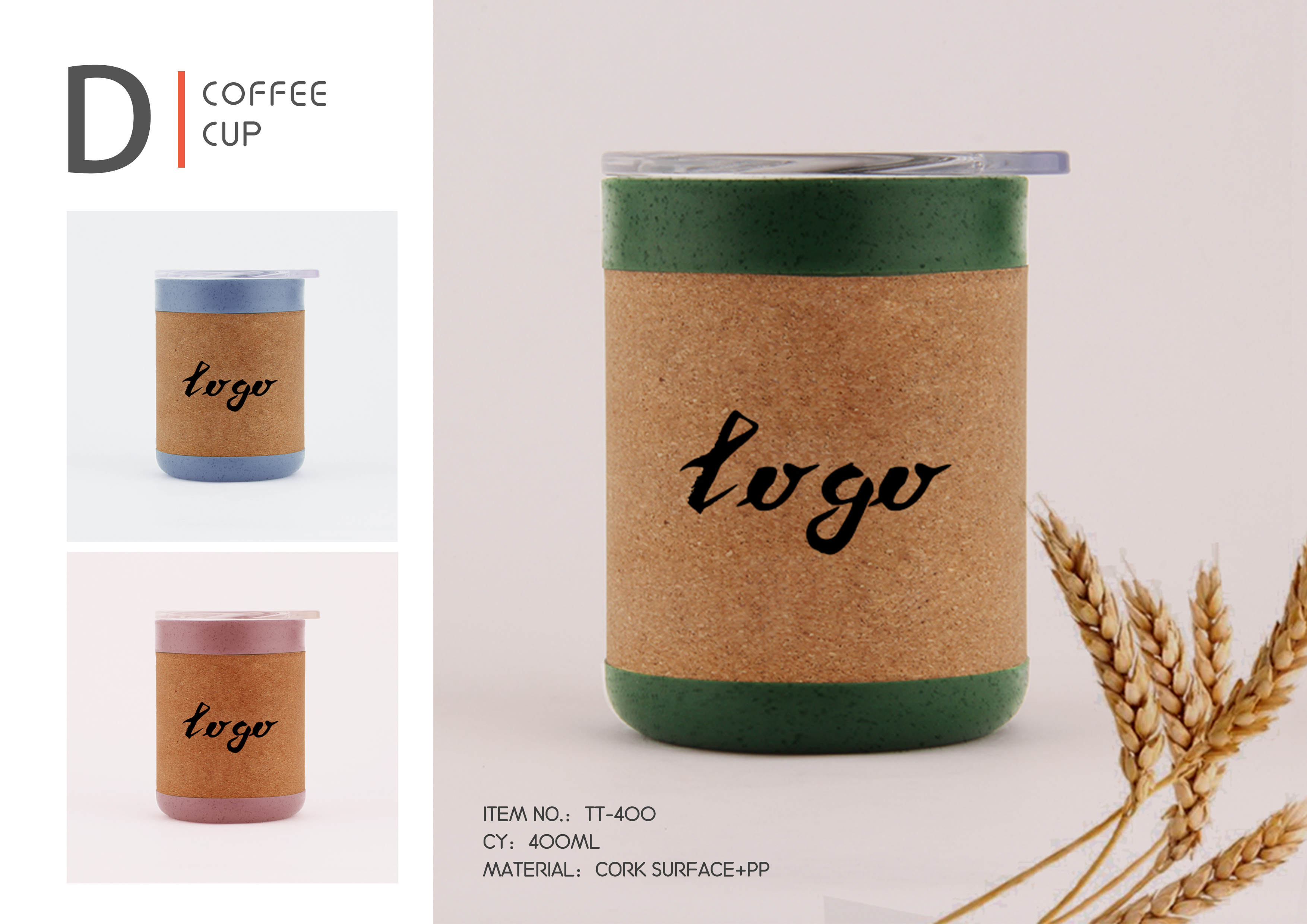 Environmental protection Promotion Portable Reusable Cork Plastic Coffee Mug Coffee Cup Tumbler With Lid