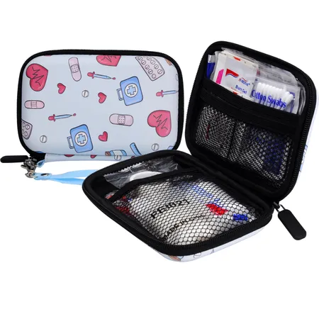 Made of EVA material with PU coated surface, three different sizes, contains essential first aid items that can be used to deal with small injuries. They can be used in home, office, outdoor and traveling.