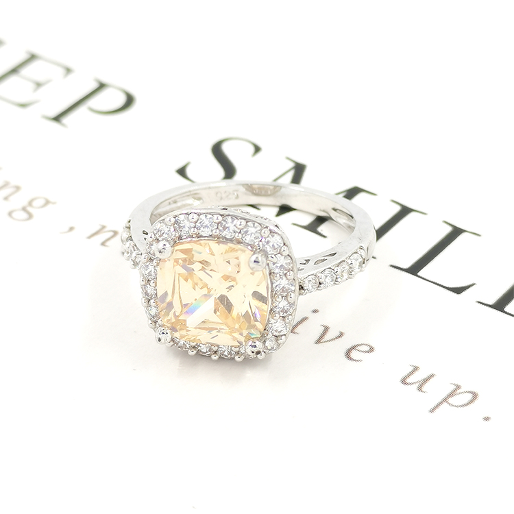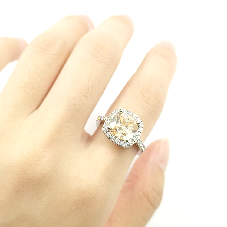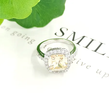 Eternity Square Cut Yellow Crystal Women Engagement Ring Diamond Wedding Rings