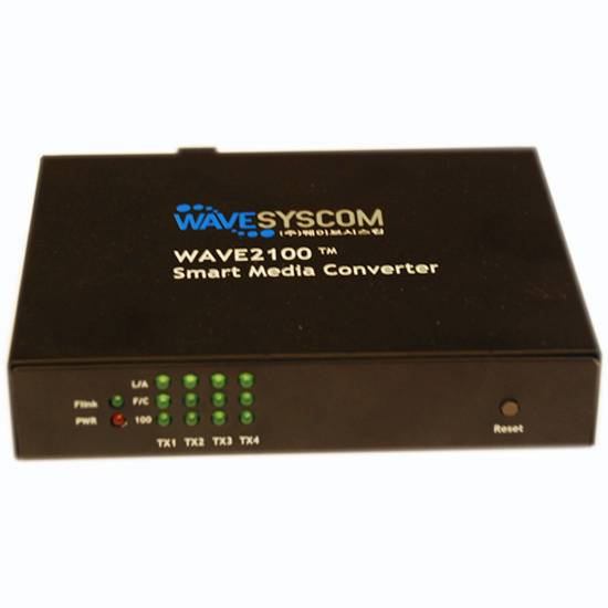 The WAVE 2100 series Smart Ethernet Media Converter converts Ethernet 10/100Base-TX signals into 100Base-FX signals. It is used as an optical switch hub with the CWDM-PON network technology that converts 1-port FX or 2-port FX into 3/4-port 10/100Base-TX.