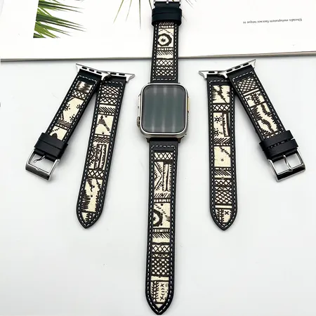 Ethnic style nylon leather watch strap applicable for classical watch and apple watch full series