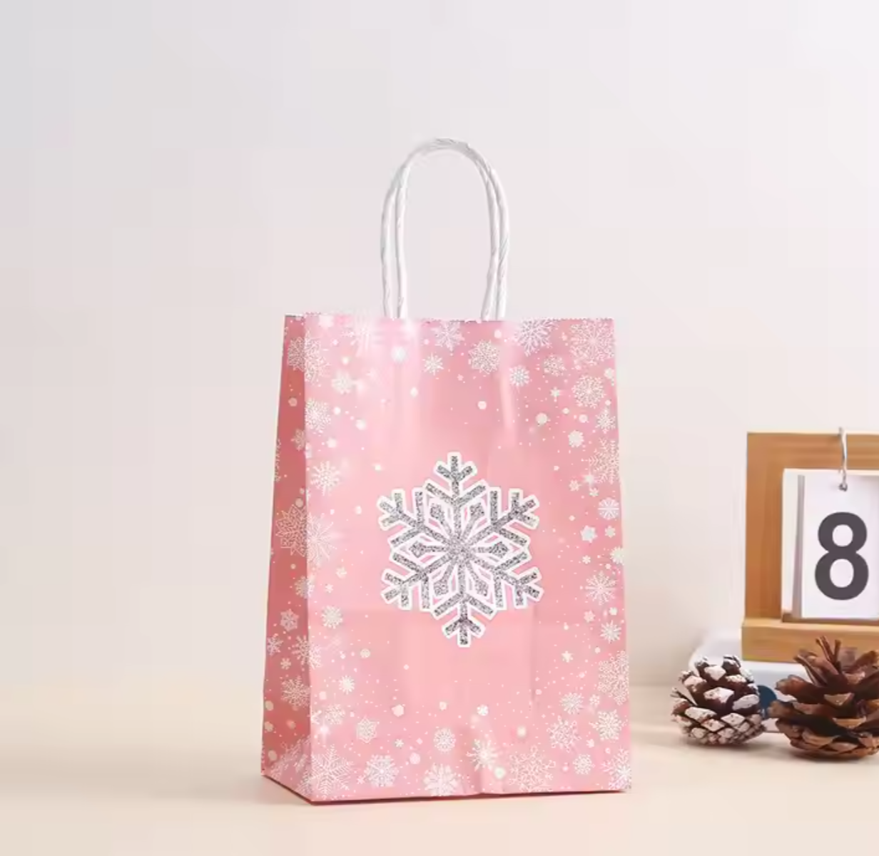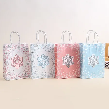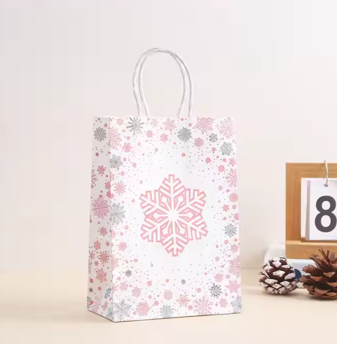 European Style Creative Christmas Snowflake Kraft Paper Gift Tote Bag Custom Logo Candy Packaging Hot Stamping Surface Wholesale