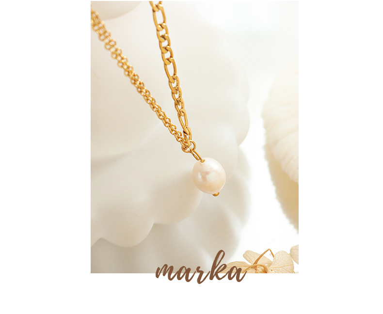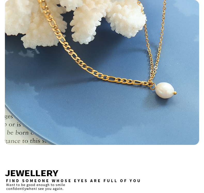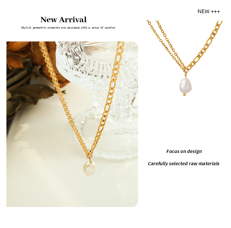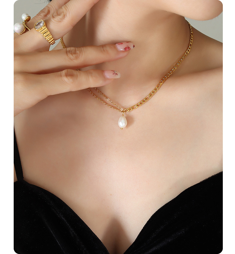 European and American double chain freshwater pearl necklace Women's collar chain Titanium steel plated with 18K gold
