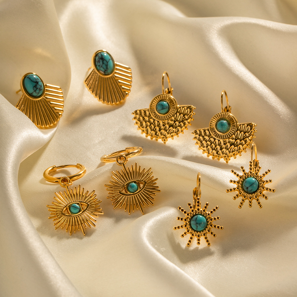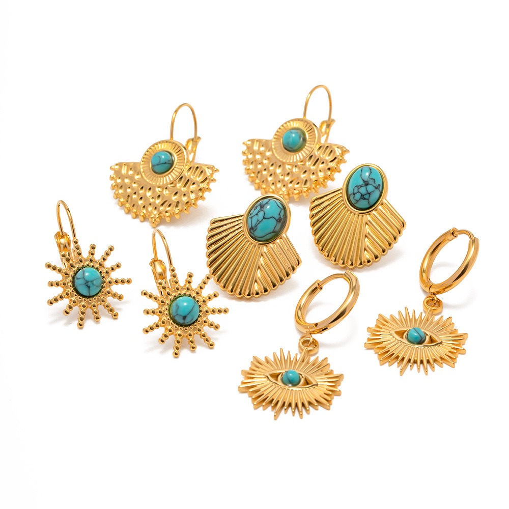European and American evil's eye earringsTitanium Steel Earrings Retro Style Turquoise Earrings