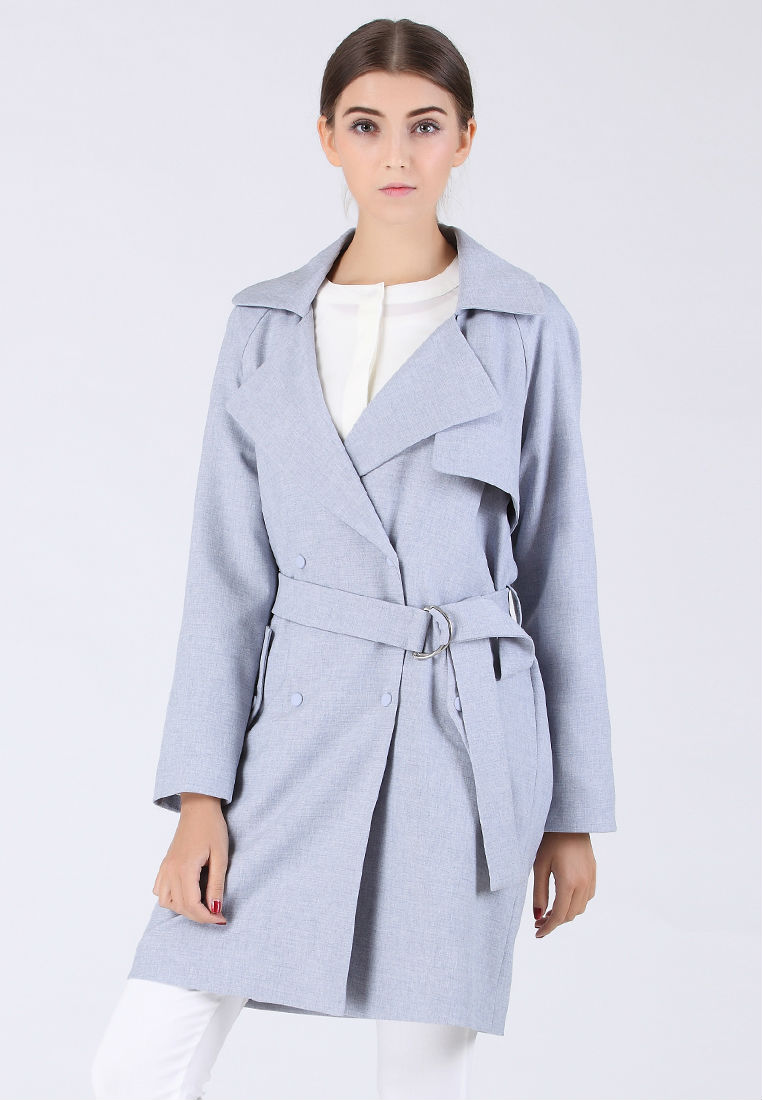 This trench coat is made with exceptionally fine fabric that is soft, comfortable, and beautifully tailored. The design details include matching color snap buttons, two flap pockets, removable belt, and storm flap. The sleeves can be worn rolled on or down to show the contrasting color on the inside and to offer a more casual look.