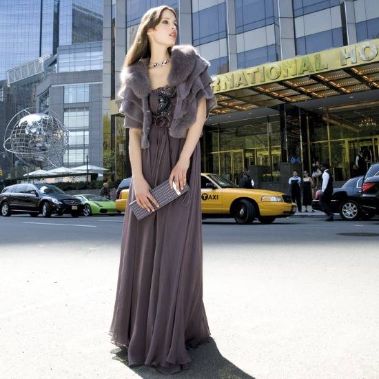 This sleek chiffon gown flaunts eye-catching rosette embellishment on the waist. The jeweled neckline makes a perfect match with your favorite necklace. The optional tiered cape makes it suitable for any prom or formal event.