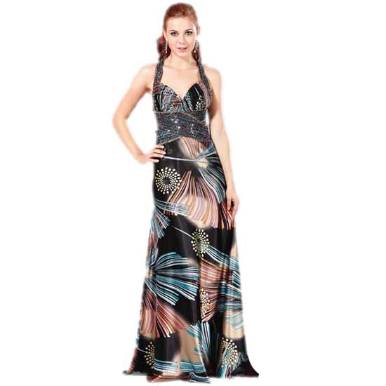 This evening dress boasts a sweetheart neck for a feminine touch. The dress is printed with firework-like graphics for a gratifying visual effect. Heads will turn around when you step out in this beautiful evening dress for you next special occasion.