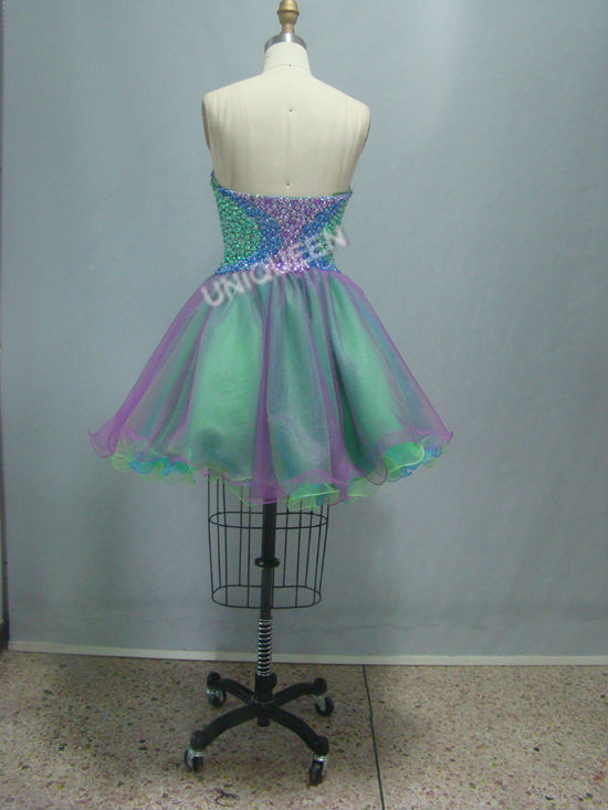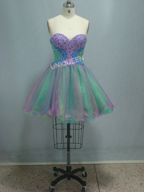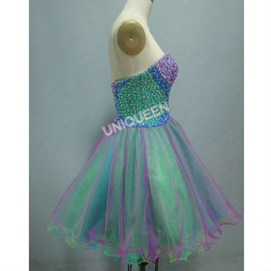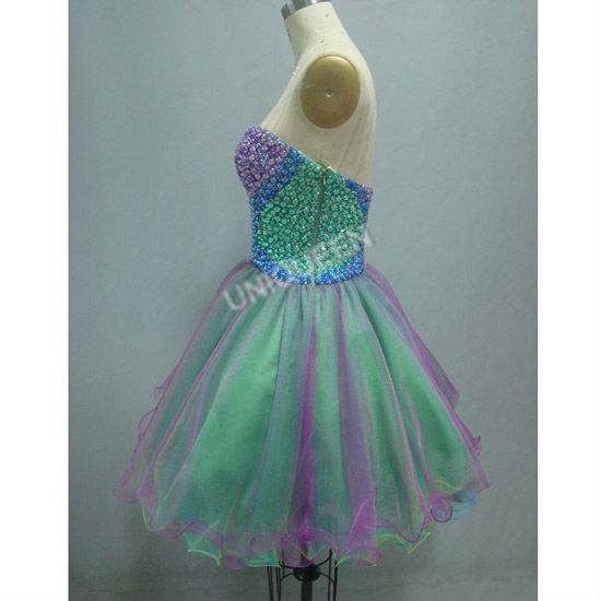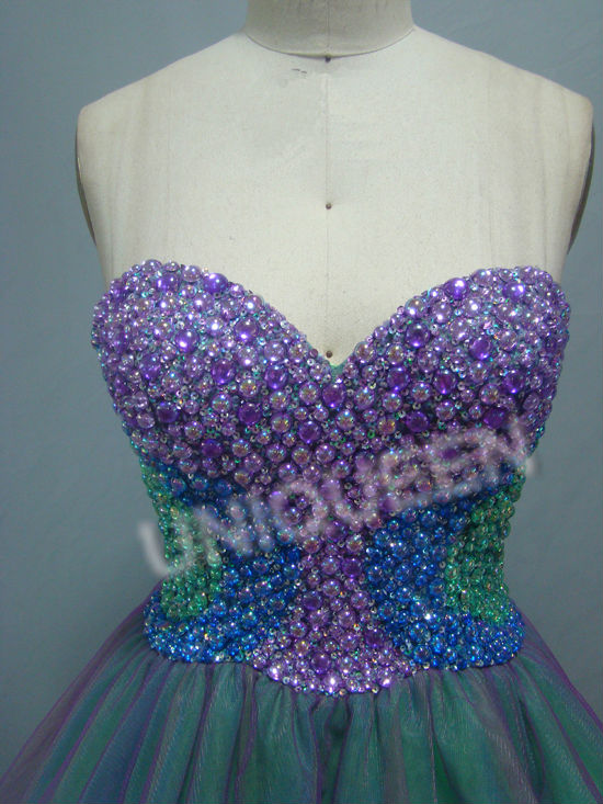 The highlighted evening dress comes in a two toned design with a sweet heart neckline. It has a strapless design and is adorned with a purple heart in the front. This dress flaunts a stylish look and is comfortable to wear.