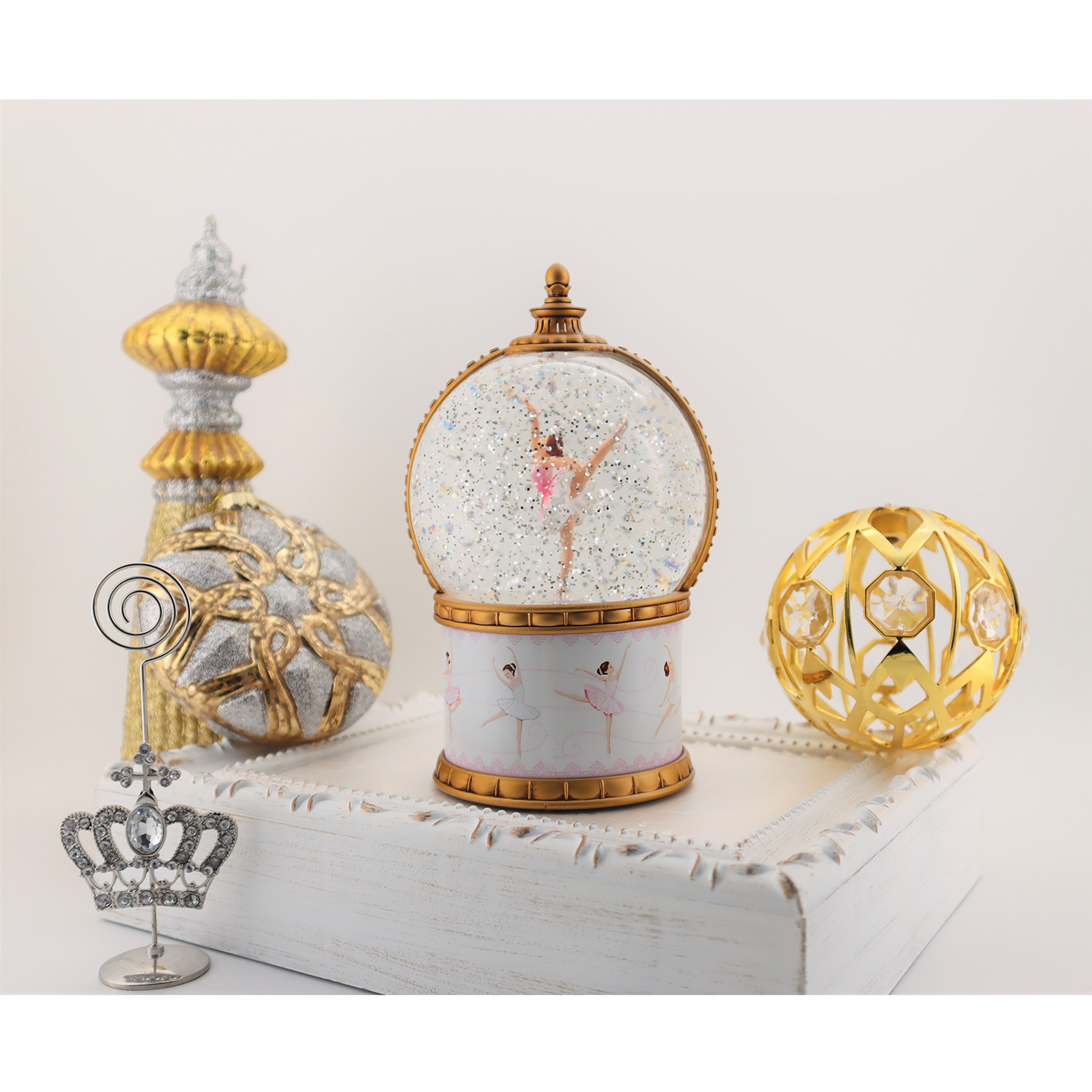 Everyday Ballerina Scene Plastic Water Globe 100mm 7"H with Swirl Glitter & Music, B/O