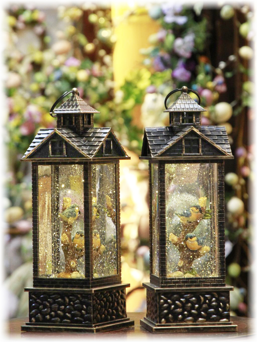 Everyday Spring Lighted Water Lantern House 12"H Snow Globe w/Swirling Glitter Battery Operated