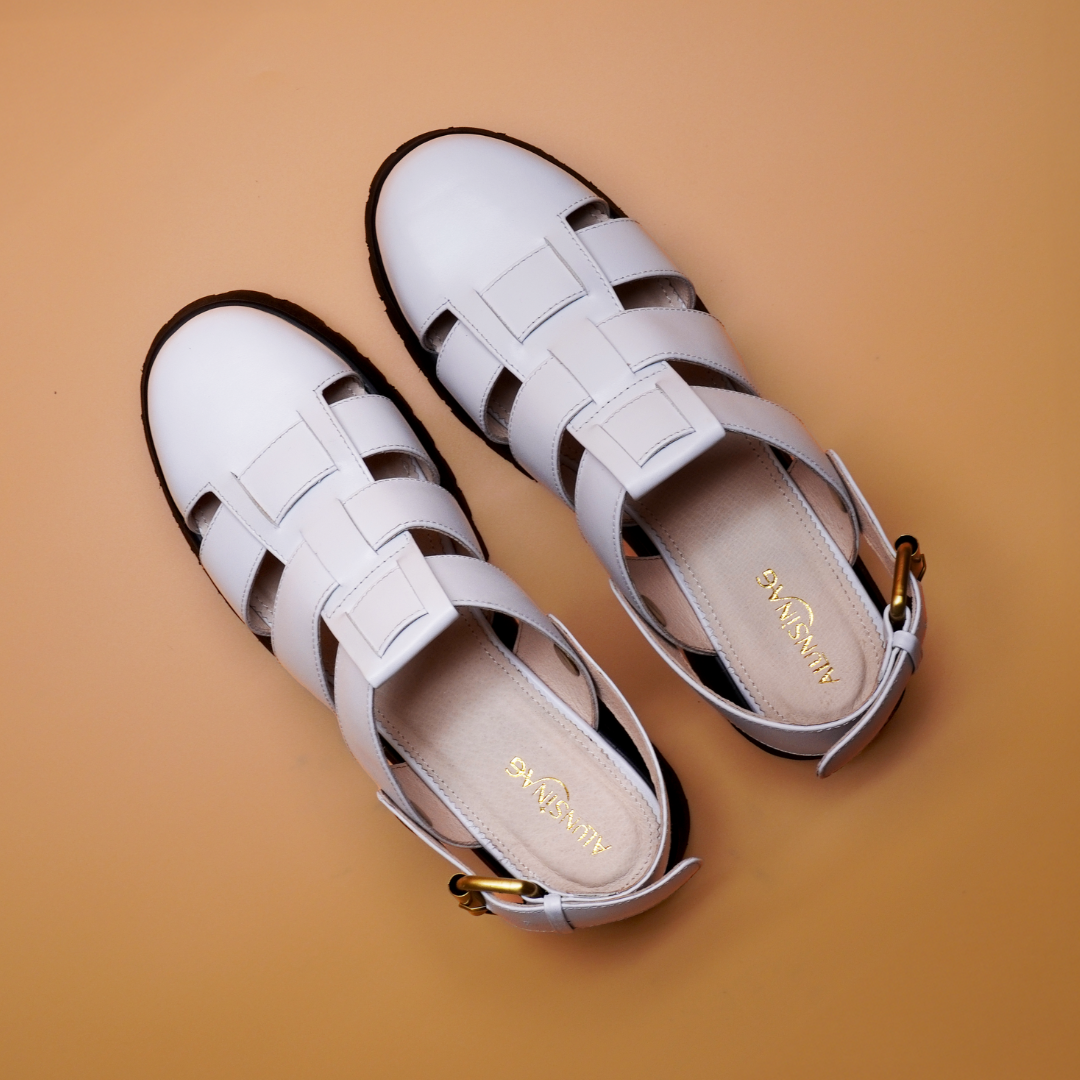 Materials: genuine leather, EVA soles, and metal hardware
