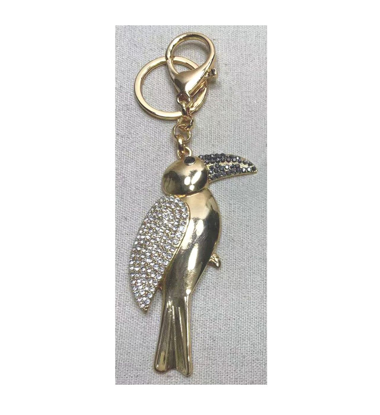 • As shown is a high-fashion bird style golden plated key chain.