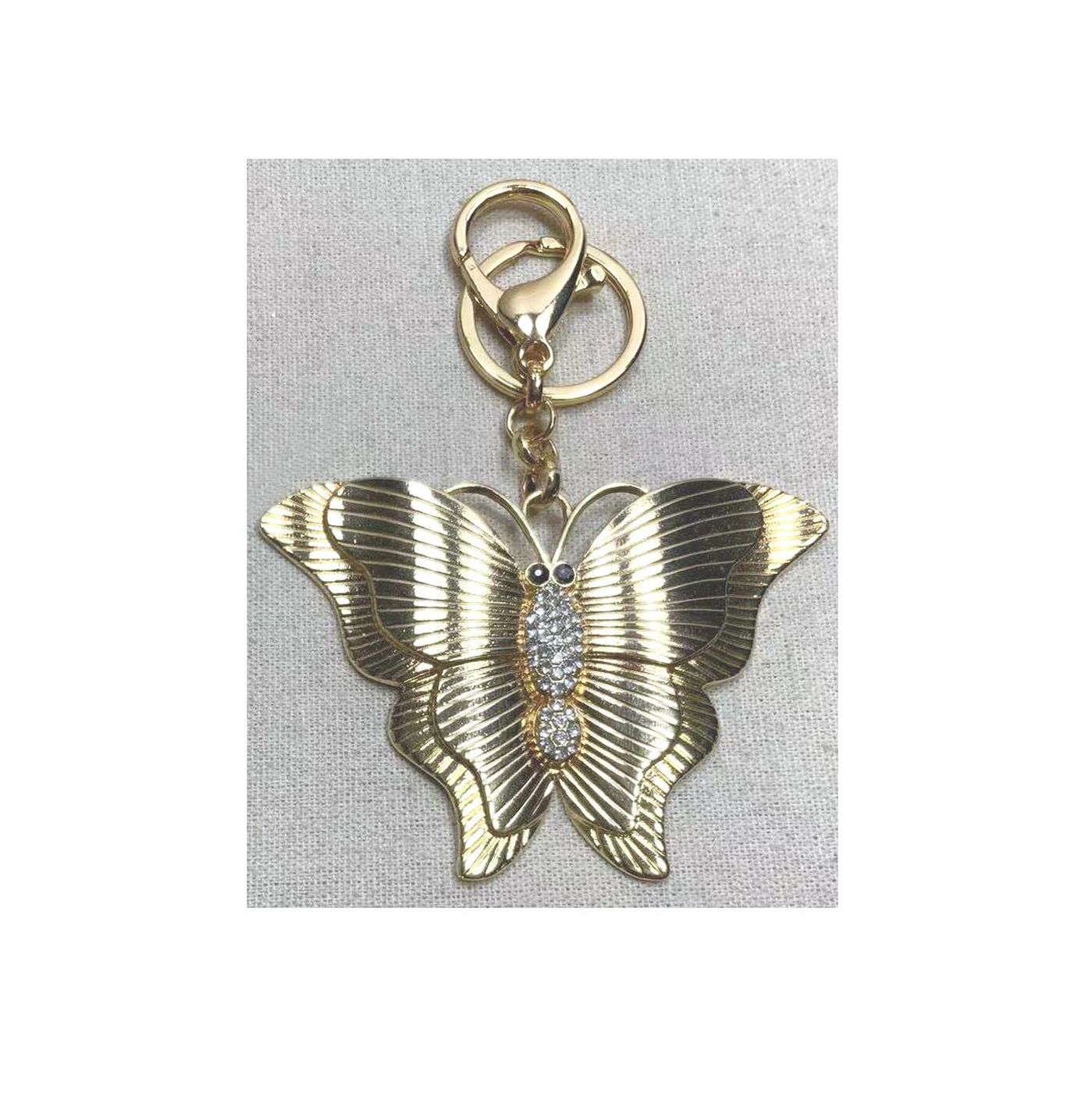 • As shown is a high-fashion butterfly style golden plated key chain.