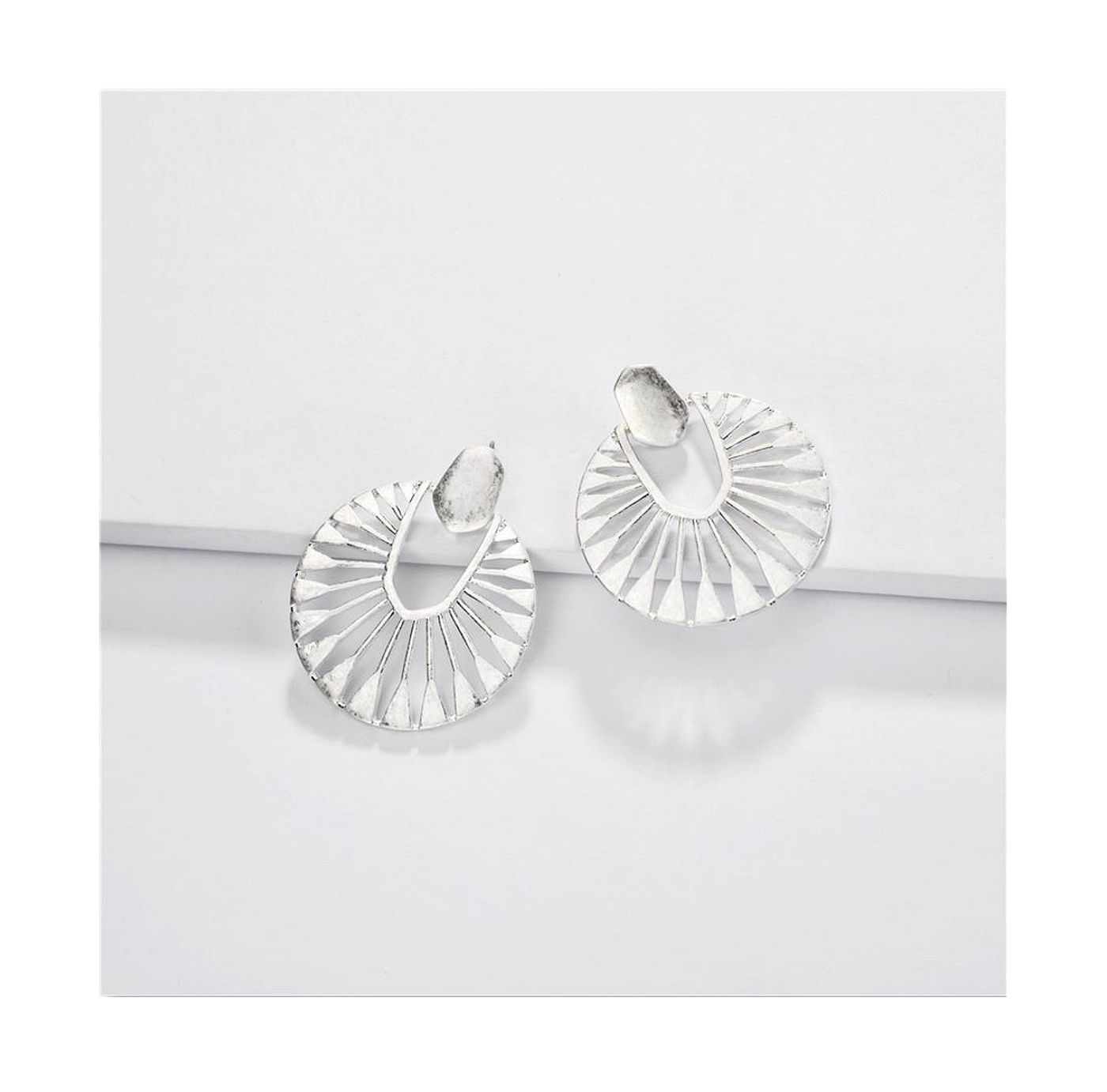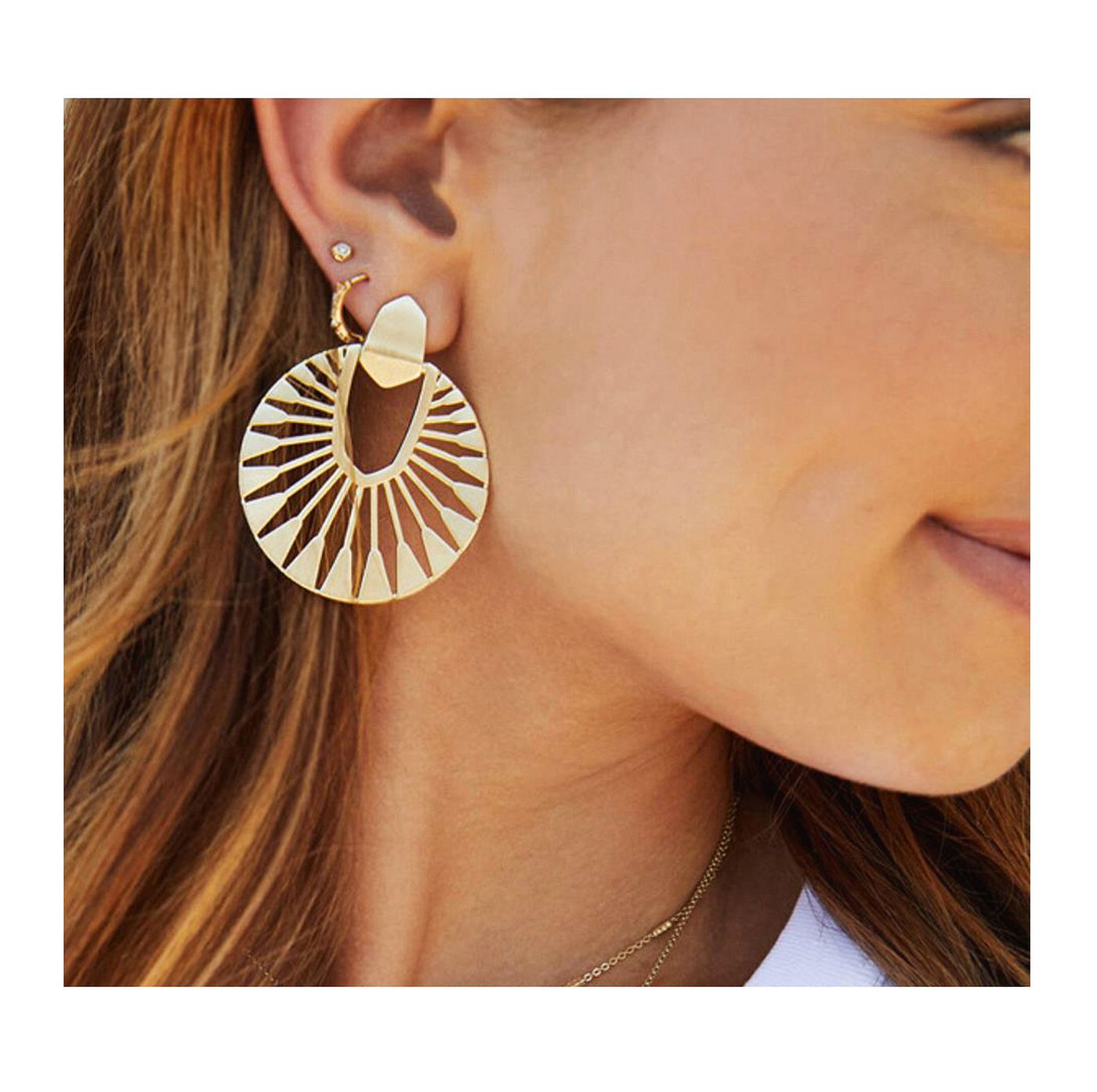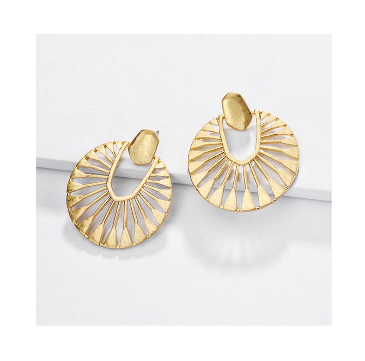 As shown is a high-fashion circle style golden plated alloy parts drop earring.