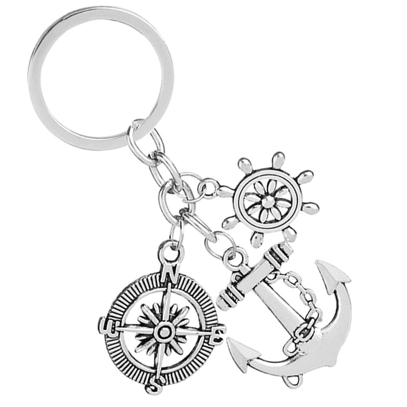 As shown is a high-fashion anchor style crystals silver plated key chain.
