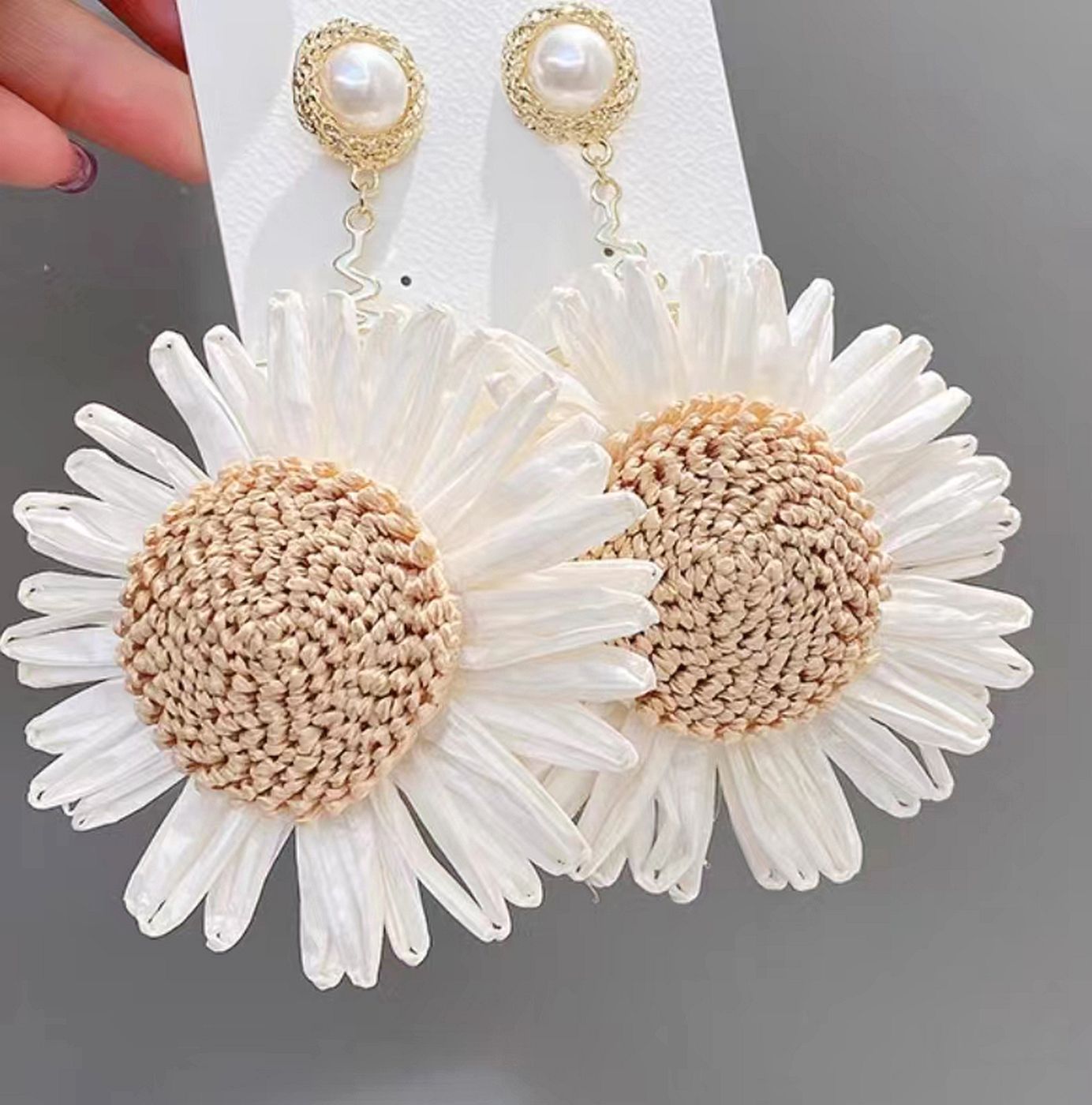 As shown is a high-fashion flower style golden plated alloy parts drop earring.