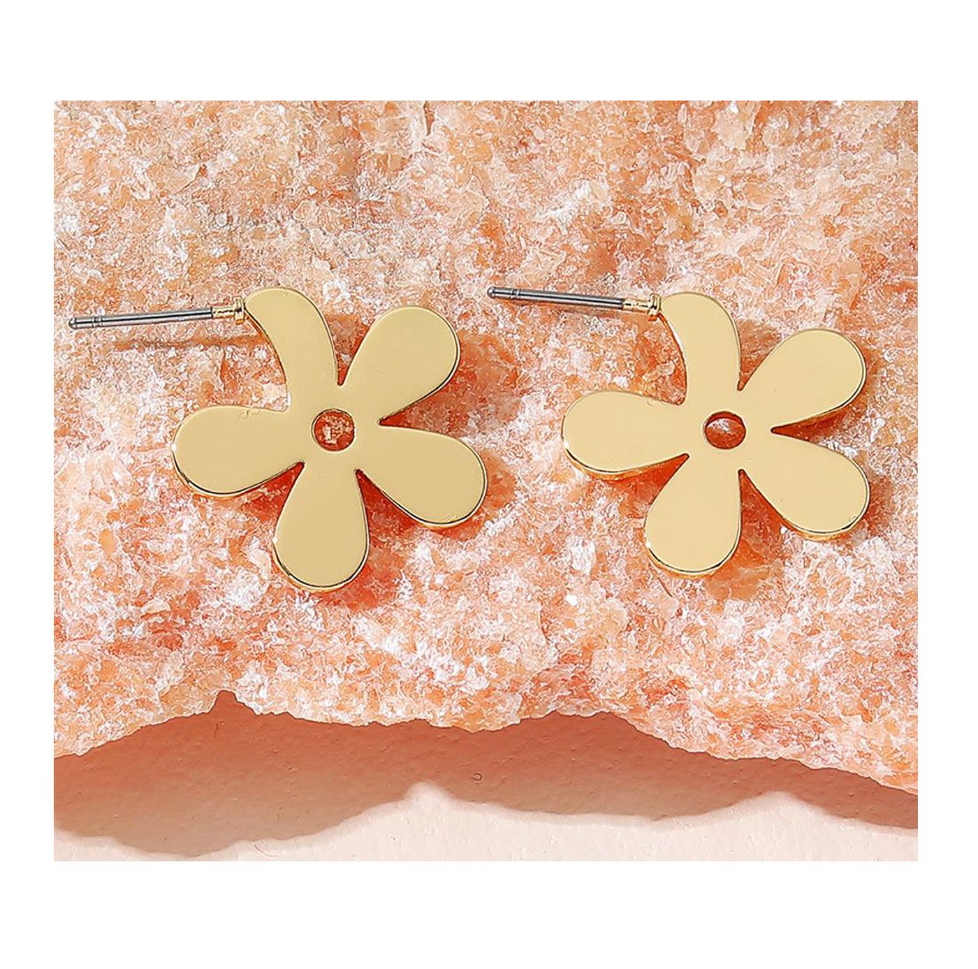 As shown is a high-fashion flower style golden plated alloy parts drop earring.