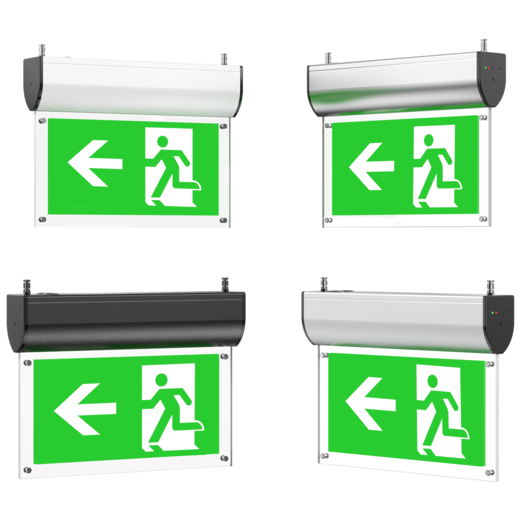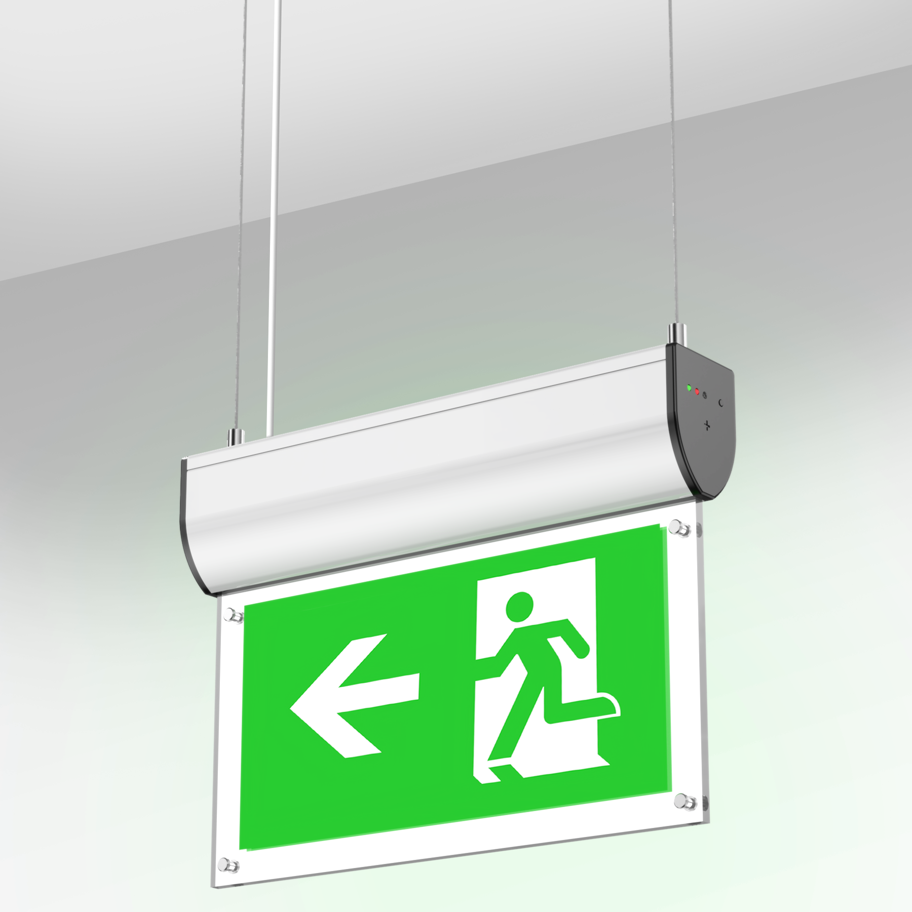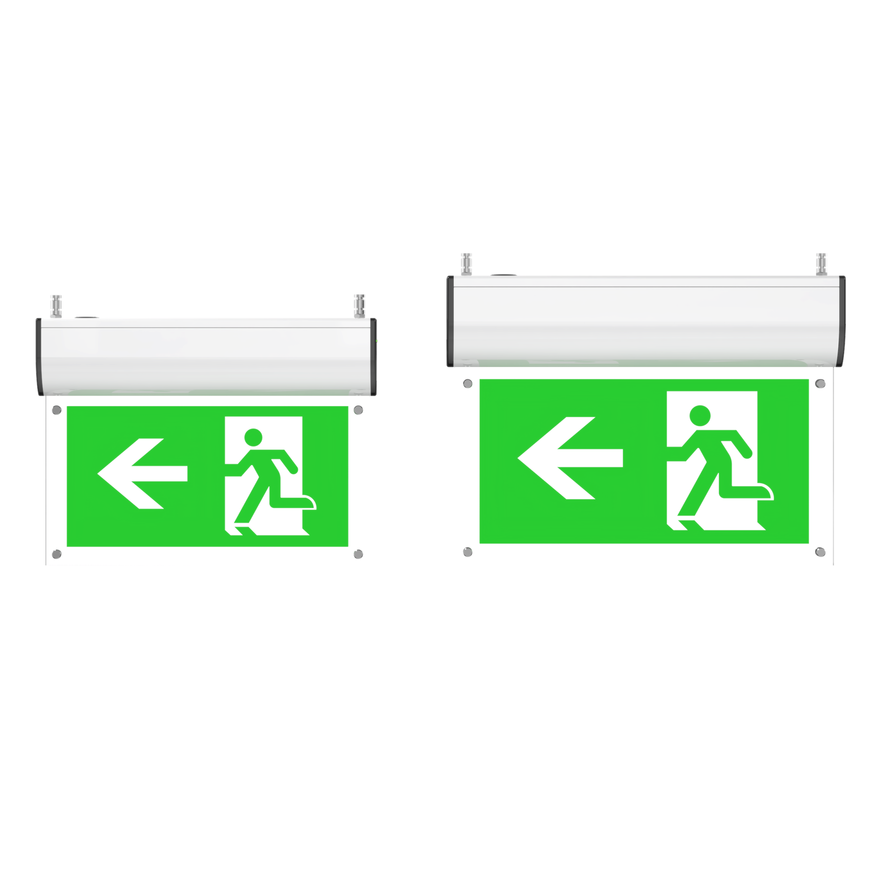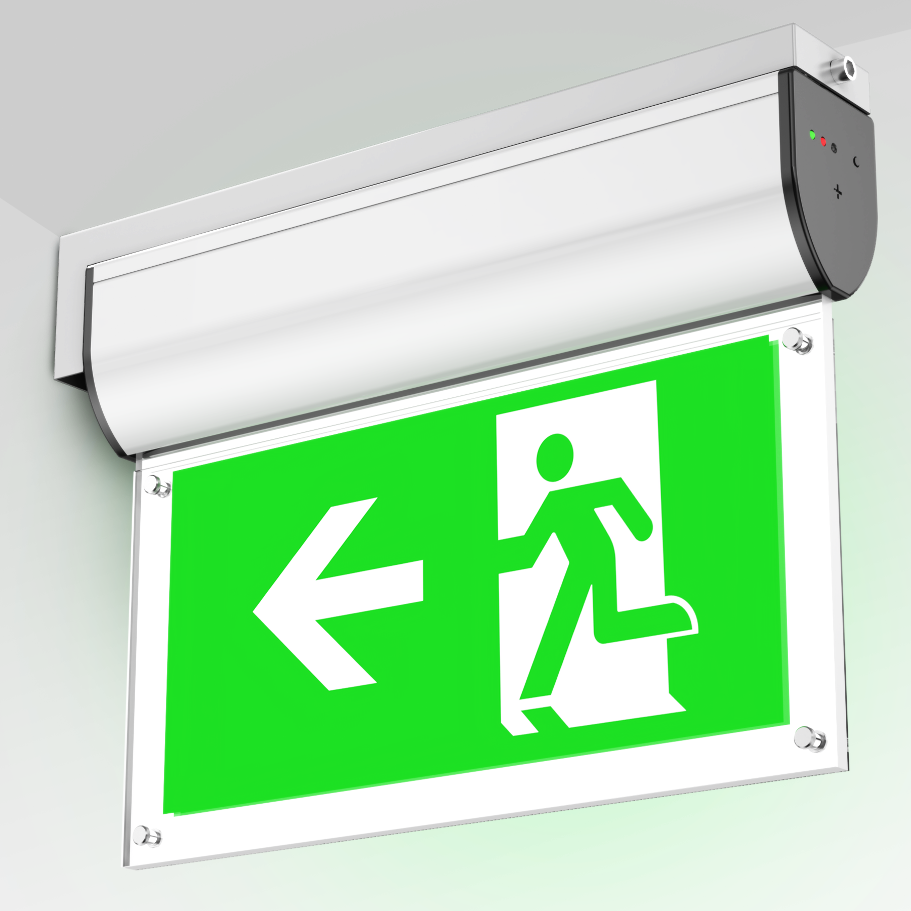Screws fixed sign legends -- easy replacement, the legend panel is an optional part of the exit sign
