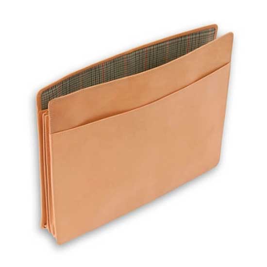 This is a sophisticated document folio for carrying documents in and out of meetings. It is designed with an orange shell and plaid lining for added attractiveness. This elegant folio will keep your important travel documents safe.