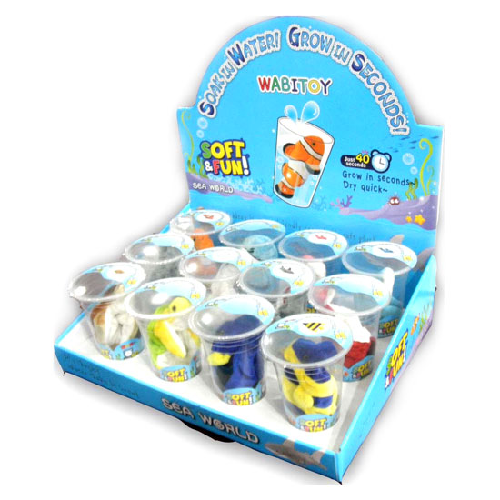Presented here is a water-friendly soft toy designed for children. Simply soak the soft toy in water for 40 seconds, and it will expand to an ideal size. This expandable soft toy is easy to play with.