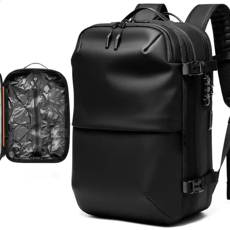 15-pocket design with hidden side passport pocket.