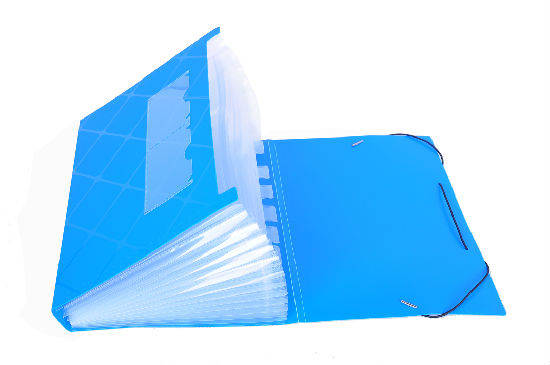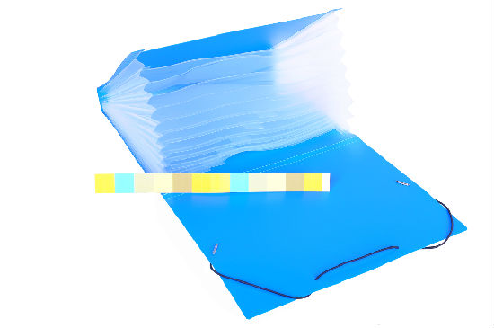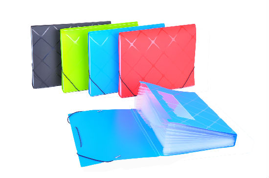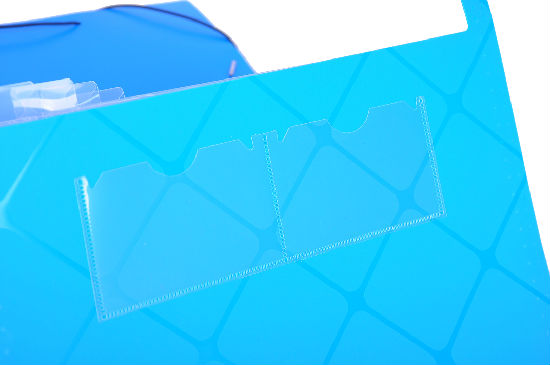 Color: Blue, green, red, black and orange for cover and transparent clear for inside pockets