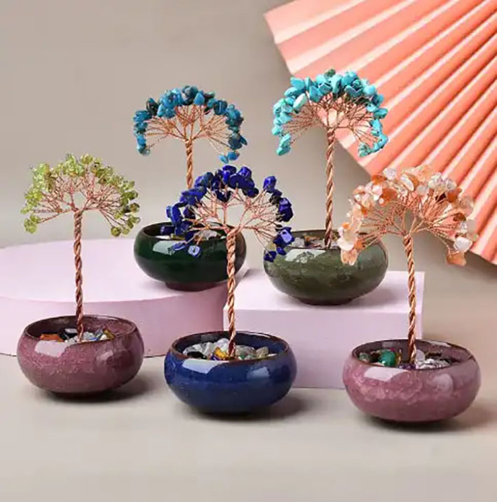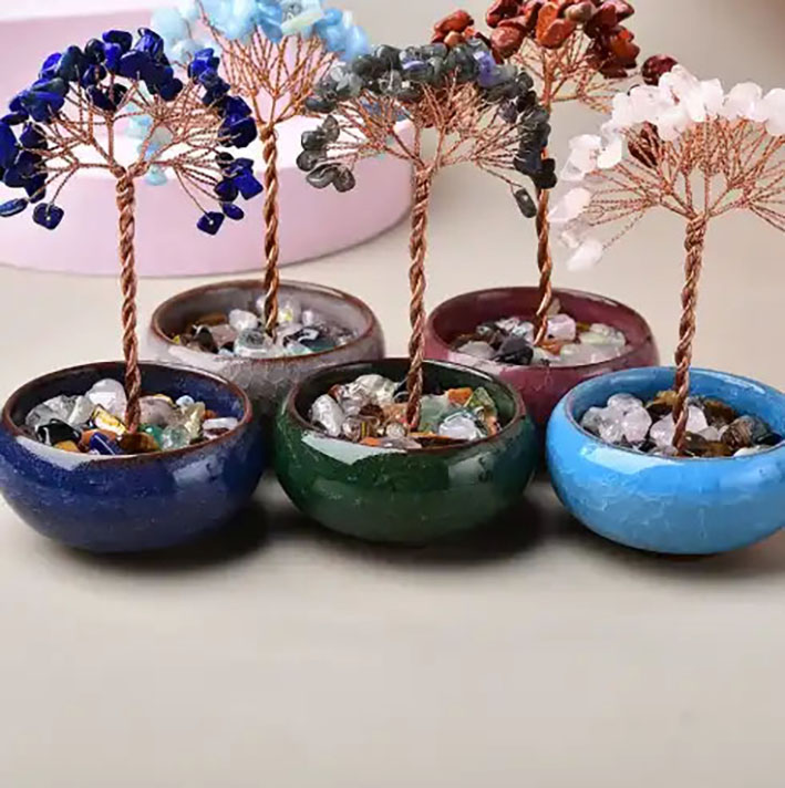 Exquisite wholesale natural treasure ceramic bowl base tea cup base wealth tree home crafts office desktop decoration