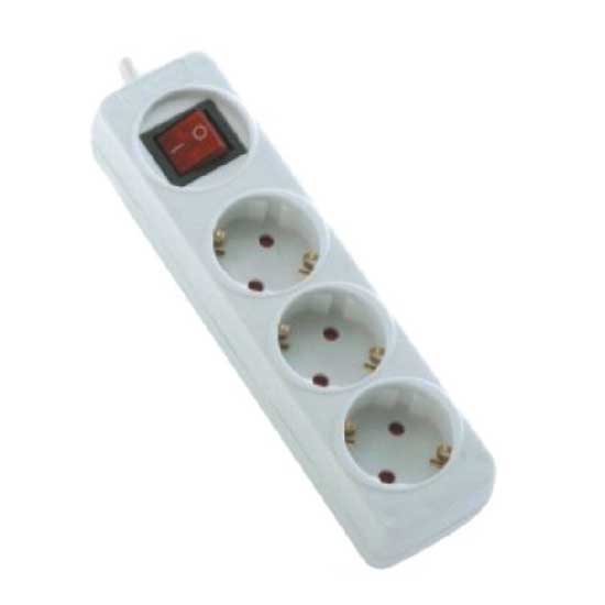 Displayed is an extension socket that comes with three sockets. With a convenient on and off switch, this extension socket is easy and safe to use. This extension socket is made to be of high quality for a long service life.