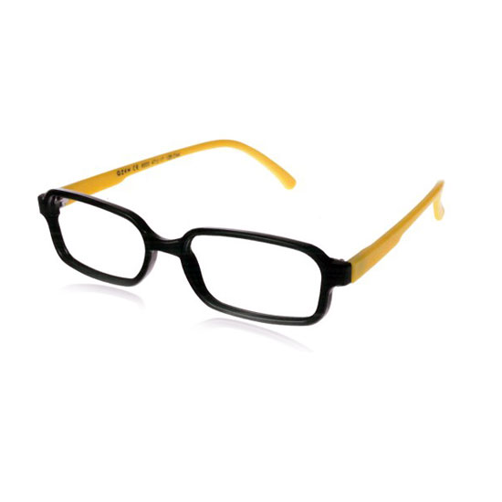 This is an eyeglass frame featuring a bi-color design. The black rims are contrasted with the yellow temples for a fashionable look. Made of high quality material, this eyeglass frame is a durable choice.