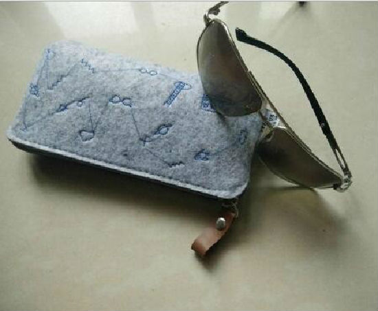 Classy, elegant and casual, this oblong pouch offers a stylish storage solution for a pair of sunglasses. The bag is well-crafted with stitched pattern atop, and closed securely with a zipper with a puller strap. Made out of felt, this hard-wearing bag bestows a unique touch and style to flatter youngsters.