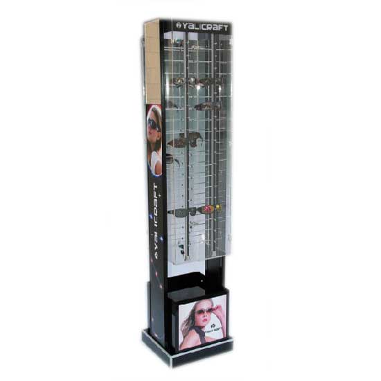 This compact eyewear display shelf is a great addition to any eyewear store. It offers a stylish way to display sunglasses, reading glasses, protective glasses, etc. The display shelf can be customized with eye-catching advertisement.