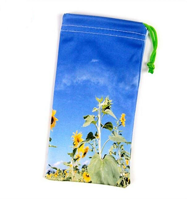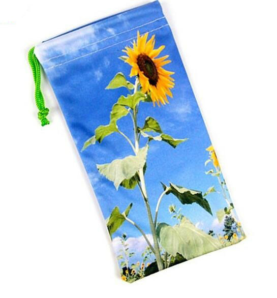 This is an eyewear case printed with a sunflower picture atop. The bag comes in a quintessential rectangular shape for holding one pair of glasses. Made out of delicate microfiber, this bag doubles up as a lens cleaner for added convenience.