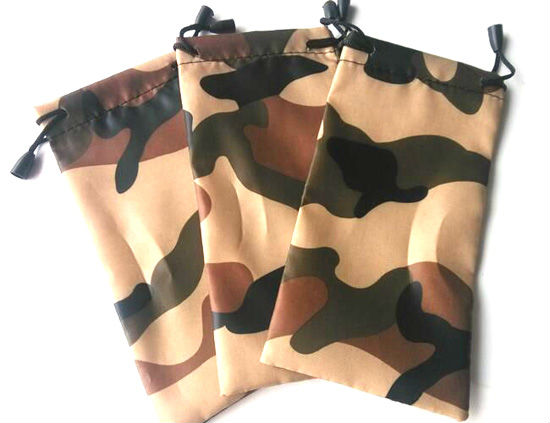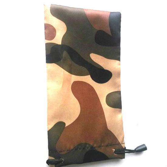 This microfiber eyewear pouch flaunts an eye-catching design covered with camouflage prints. The drawstring pull closure allows for fast and easy access to your eyeglasses. This eyewear pouch is designed to protect your eyeglasses or shades from scratches.