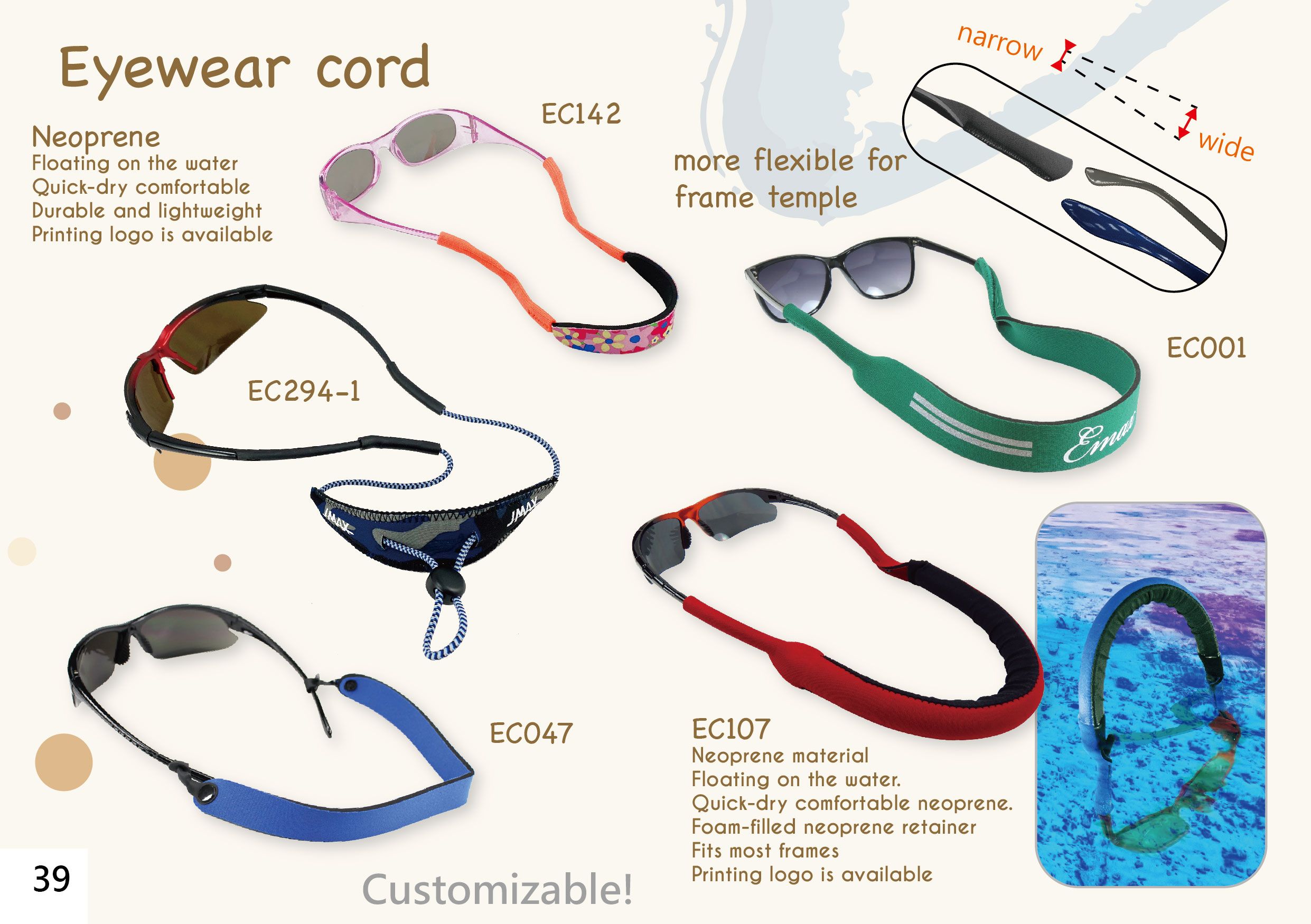 The eyewear cord could be customized with different material and color and the logo as well